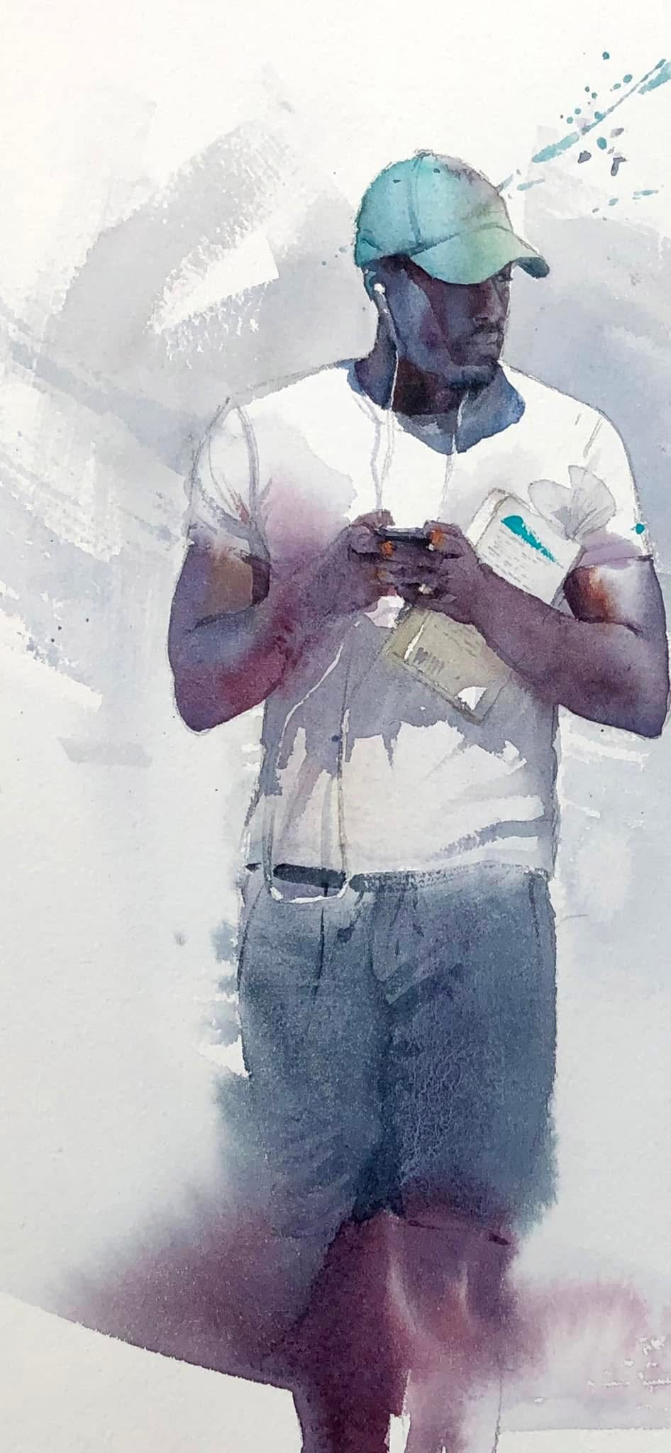 Eudes Correia is a Brazilian watercolor artist currently based in Lisbon, Portugal. He is celebrated for his ability to transform ordinary people and fleeting street scenes into luminous works of art, filled with emotion and atmosphere. His paintings often feature anonymous figures in daily life, captured with a sense of immediacy and poetic simplicity that resonates deeply with viewers.